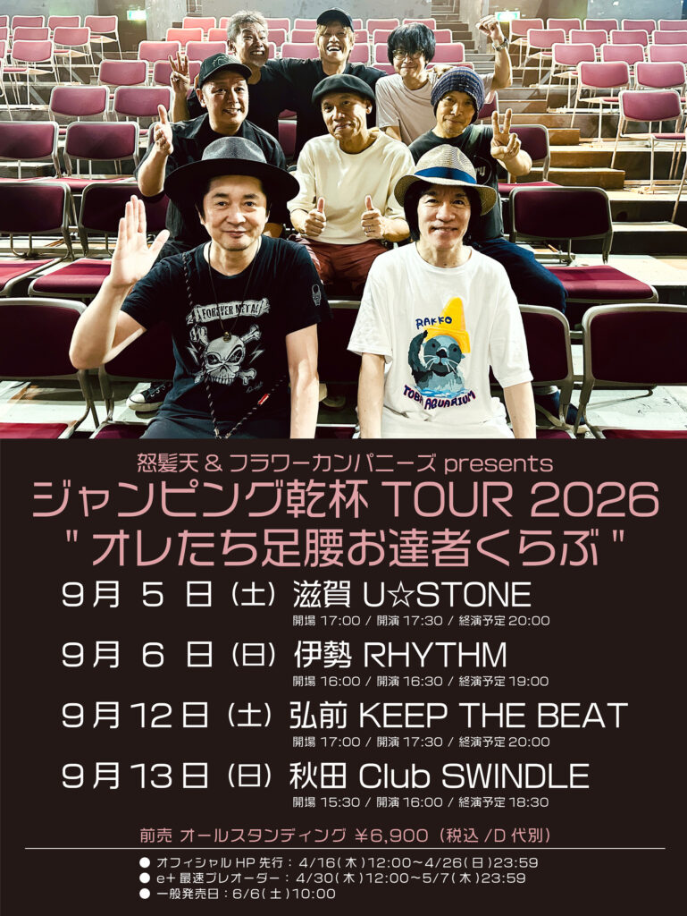 サンボマスター夏の東北7か所を廻るツアー「ロックンロール デスティネーション in とうほく 「from ふくしま for ふくしま」、7/25(土)石巻、7/26(日)宮古の2公演にフラワーカンパニーズの出演が決定!